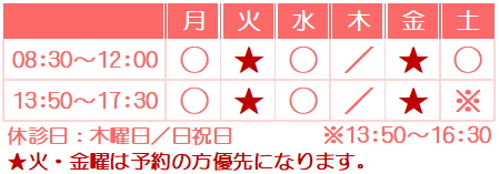 (予約が必要な検査:視野検査、眼鏡処方箋の発行、弱視斜視などの小児検査など) - 病状や検査内容により、診察の順番が前後する事があります。